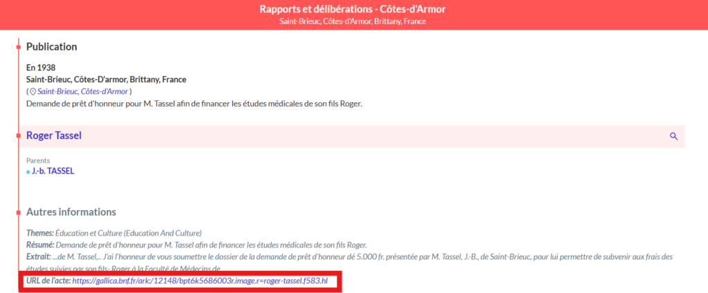 💡 Astuce : Utilisez le bouton d’Import présent sur la fiche résumé pour ajouter directement l’information et la source à votre arbre généalogique !