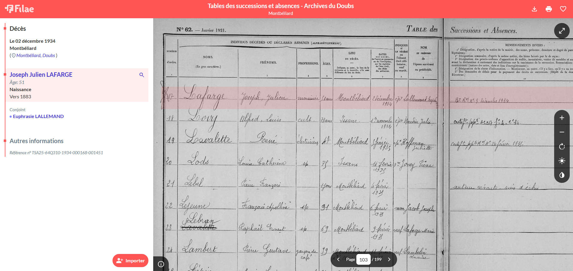 💡 Astuce : Utilisez le bouton d’Import présent sur la fiche résumé pour ajouter directement l’information et la source à votre arbre généalogique !