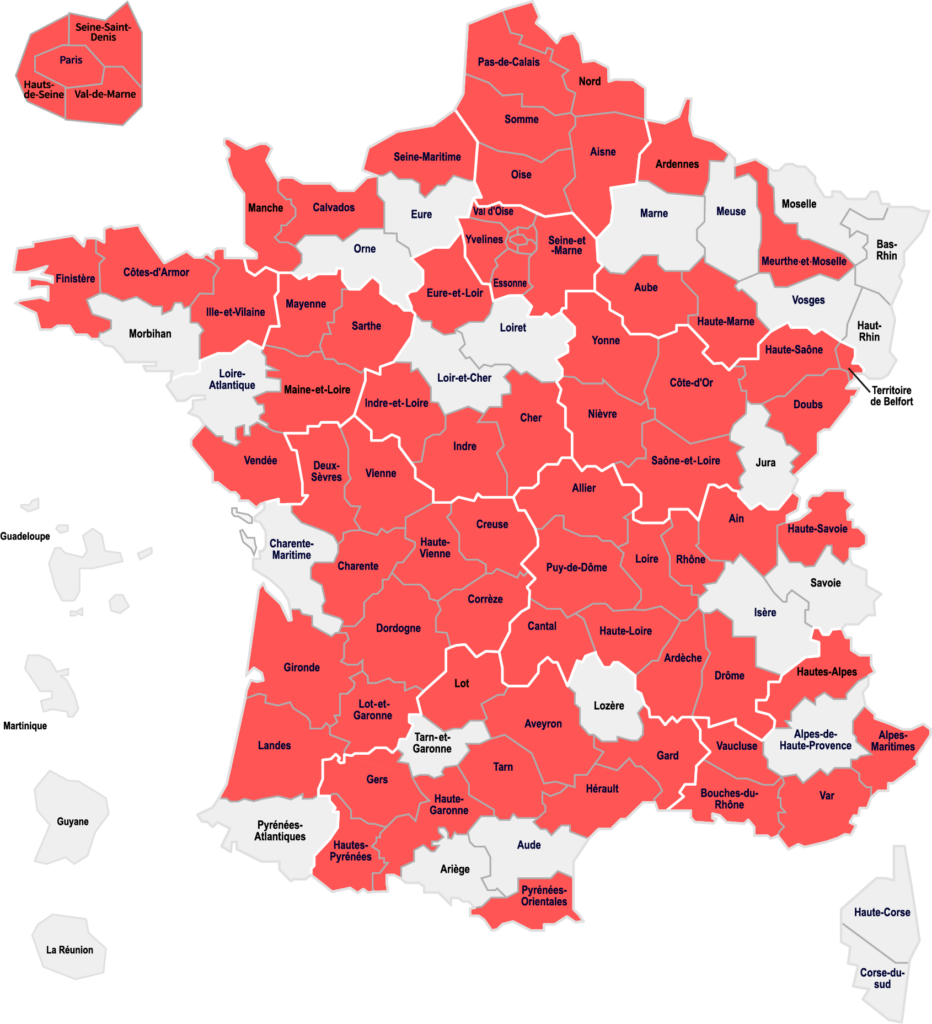 Retrouvez la liste des départements disponibles