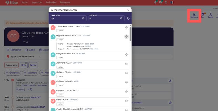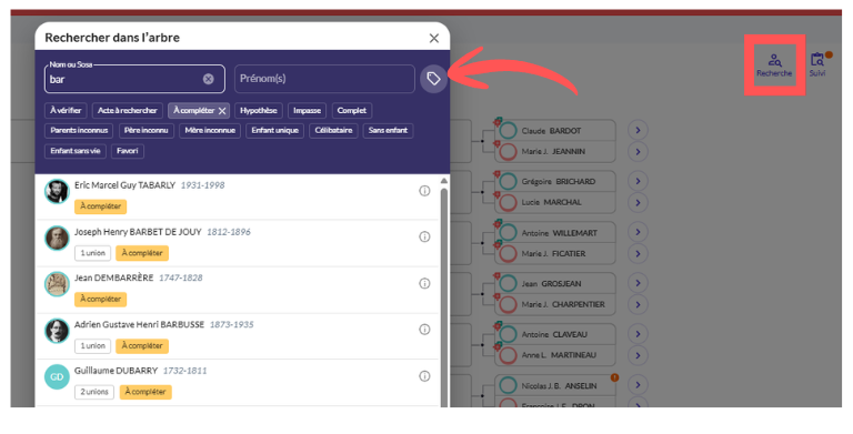 • Rechercher : Saisissez simplement un nom ou un prénom.